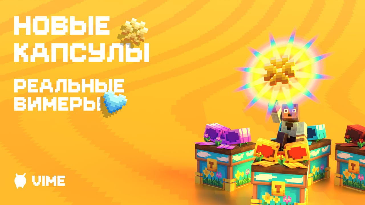 Вводим новые капсулы с некоторыми изменениями: Возможные призы: БОНУСНАЯ ИГРА в фиолетовой капсуле, выиграй ещё больше вимеров МЕГА-ПРИЗ в красной капсуле, розыгрыш 50.000 обычных вимеров каждый день Во всех капсулах падают только обычные вимеры. Поторопитесь, они будут доступны ровно одну неделю! Открывая их, вы автоматически соглашаетесь с правилами.