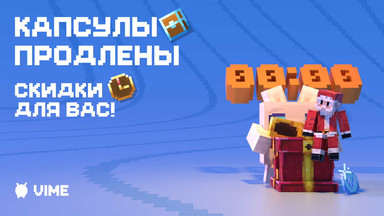 Встречайте, капсула мега удачи уже на сервере! Фишка капсулы: — По призам аналогична красной капсуле — Есть шанс 50% на выпадение бонусной мегаигры x9 Как получить? — Выдается за каждые 500 вимеров в пополнении — Пополнения не суммируются с предыдущими При пополнении идёт в дополнение к красной капсуле. 🗓 Будет доступна до конца этого дня, успевайте открыть все!