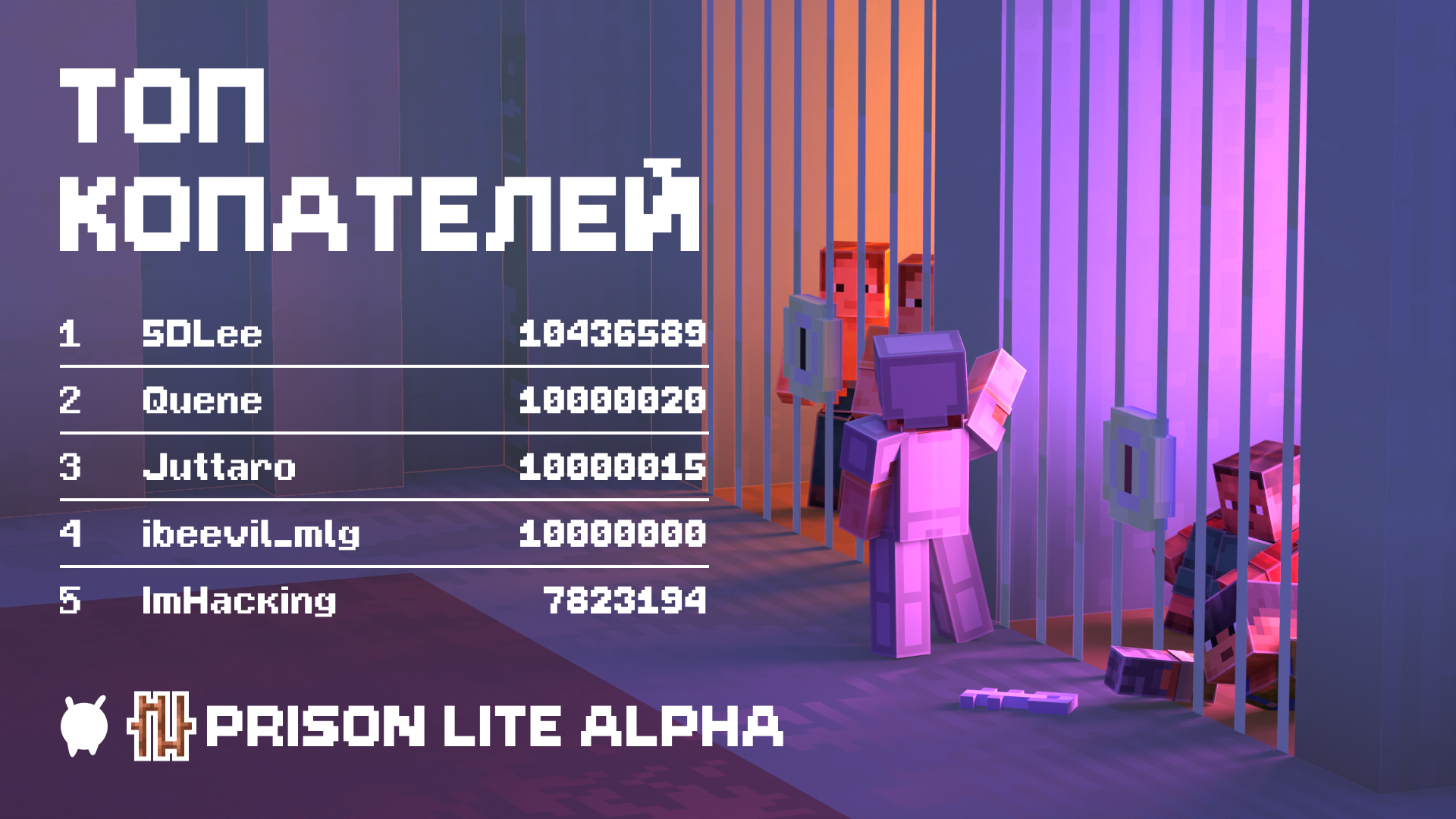 Здравствуйте, уважаемые копатели! Настало время подвести итоги 13 сезона Prison Lite. Извиняемся за задержки, модельки уже выданы победителям. Полная таблица победителей: Таблица Топ 5 копателей Alpha сервера: