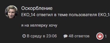 Sayonat Опубликовано: 18 июля 2023 Опубликовано: 18 июля 2023 46 минут назад, EKO_14 сказал: сладенький, за оскорбления получаешь жалобу, в след раз, когда будешь строить из себя бетмена, расставляй запятые, меня чуть не стошнило от этого текста. 46 минут назад, EKO_14 сказал: сладенький, за оскорбления получаешь жалобу, в след раз, когда будешь строить из себя бетмена, расставляй запятые, меня чуть не стошнило от этого текста. Ой, извините, не хотел оскорбить текст, это просто набор слов.