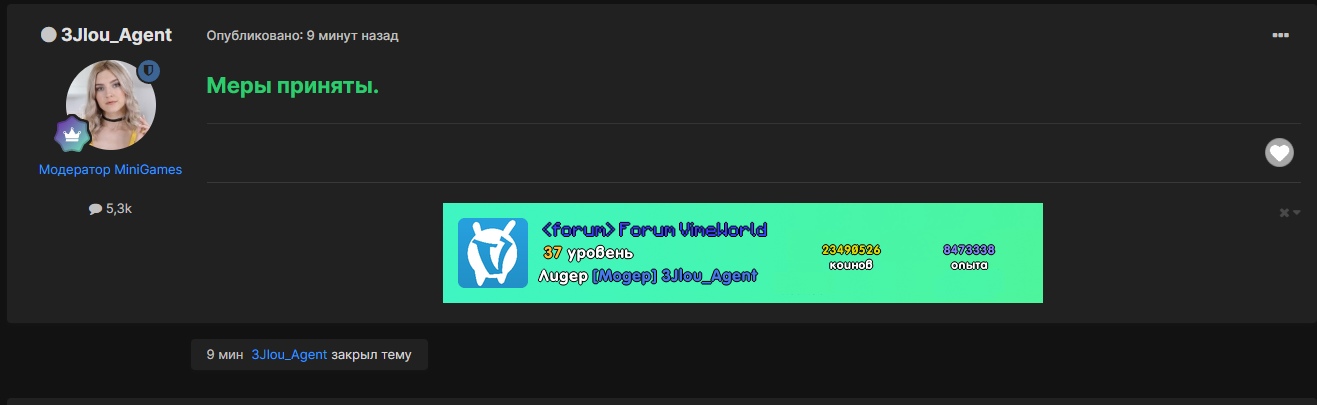 Sufe Опубликовано: 18 июля 2023 Опубликовано: 18 июля 2023 (изменено) /dell Изменено 18 июля 2023 пользователем Sufe нужно было писать на игрока который сделал подставу. BerechNight 1