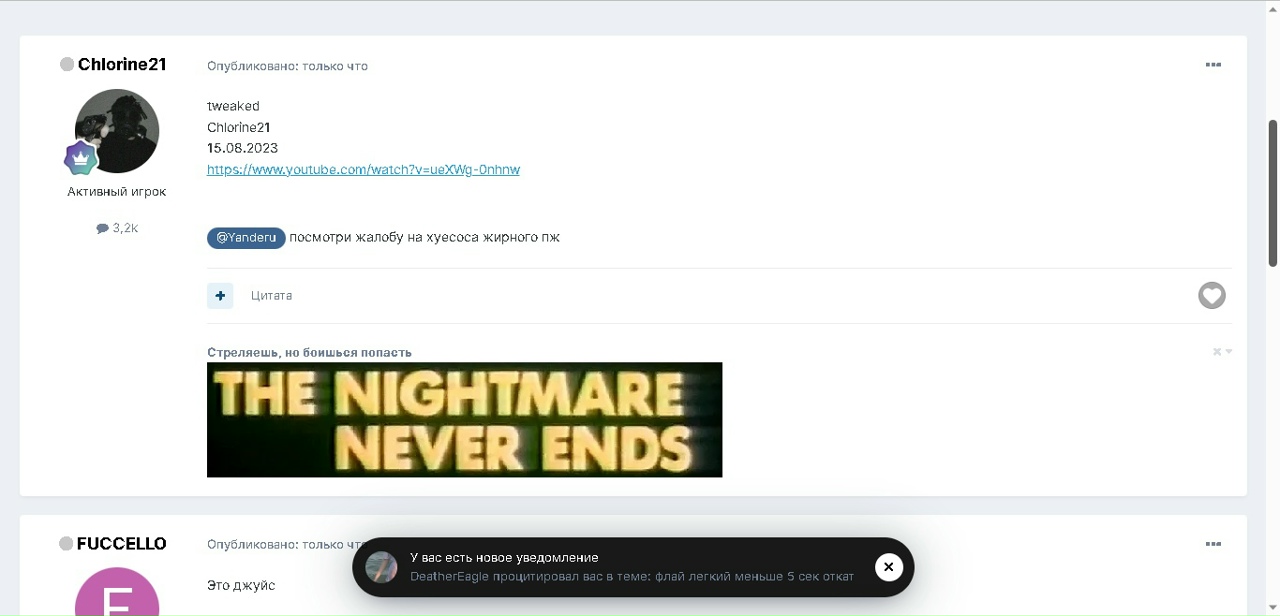 Dusu Опубликовано: 15 августа 2023 Опубликовано: 15 августа 2023 1. Chlorine21 2. @Chlorine21 3. Dusu 4. Мат + оскорбление 5. 1) 6. 1) https://vk.com/away.php?utf=1&to=https%3A%2F%2Fforum.vimeworld.com%2Ftopic%2F1257100-%D0%B8%D0%B7%D0%B8-%D0%B6%D0%B1-%D0%BB%D0%B0%D0%B3-%D0%BC%D0%B0%D0%BD%D0%B8%D0%BF%D1%83%D0%BB%2F%23comment-6629791