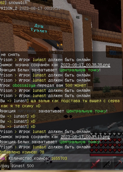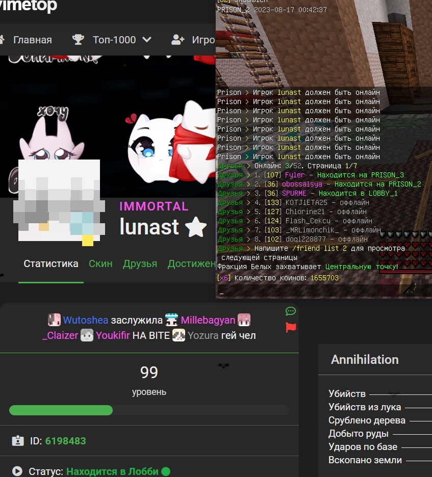 little2k081 Опубликовано: 16 августа 2023 Автор Опубликовано: 16 августа 2023 3 минуты назад, antidping сказал: попросил snoww1ch: Скрыть содержимое игрок lunast вышел чтобы залить жалобу, и чтобы не напали на фаму вышел в лобби,,