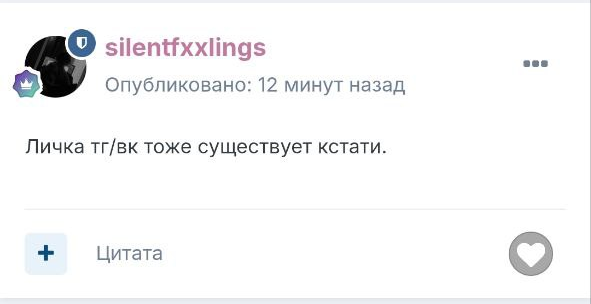 vvuies Опубликовано: 28 марта Опубликовано: 28 марта 1 минуту назад, Festival сказал: К счастью или сожалению, Артём, не общаюсь, как и не общаюсь ни с кем в рамках вайма, кроме лунаста(@bloodbarf) и Даниила(@Kydzeta) ахах ты уже сотому человеку отвечаешь что он Артем и не попадаешь Только что, bloodbarf сказал: хочу узнать у вас(vvuies), с кем я еще общаюсь rina06 els